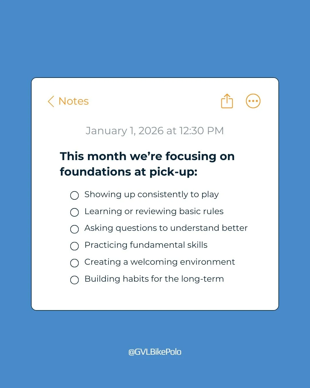 GVL Bike Polo started as a small but passionate crew of cyclists and athletes looking for a place to play our creative, competitive, and community-driven sport. Since 2022, we’ve been building this club from the ground up—sometimes quite literally.